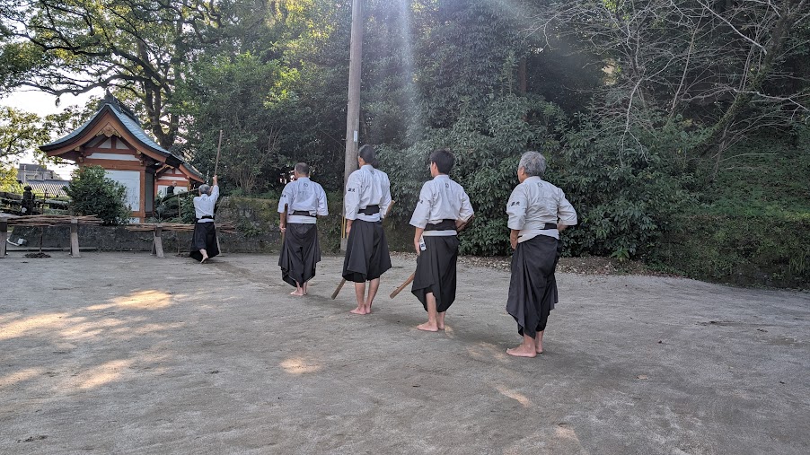 初心者の方でも、まずは一緒に鹿児島神宮階段を軽く走って、準備運動、そして基本の打ち方…という具合に丁寧に体験して頂きます