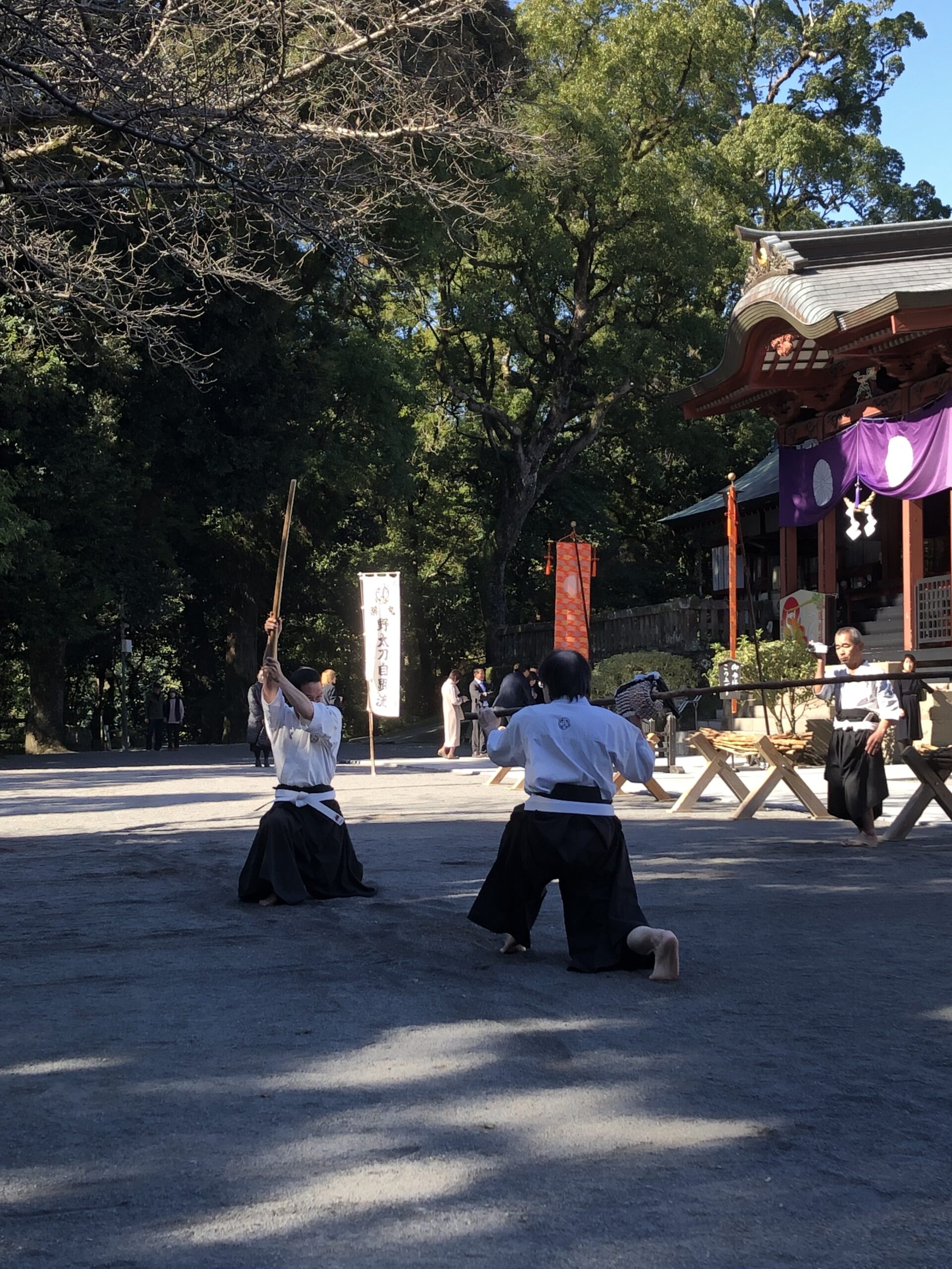 本日は鹿児島神宮にて集まって奉納演武をしました。思ったより暖かくのびのびと演武できました。