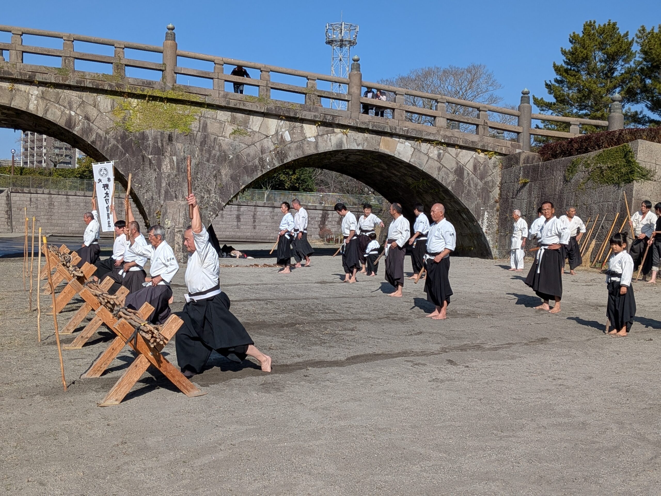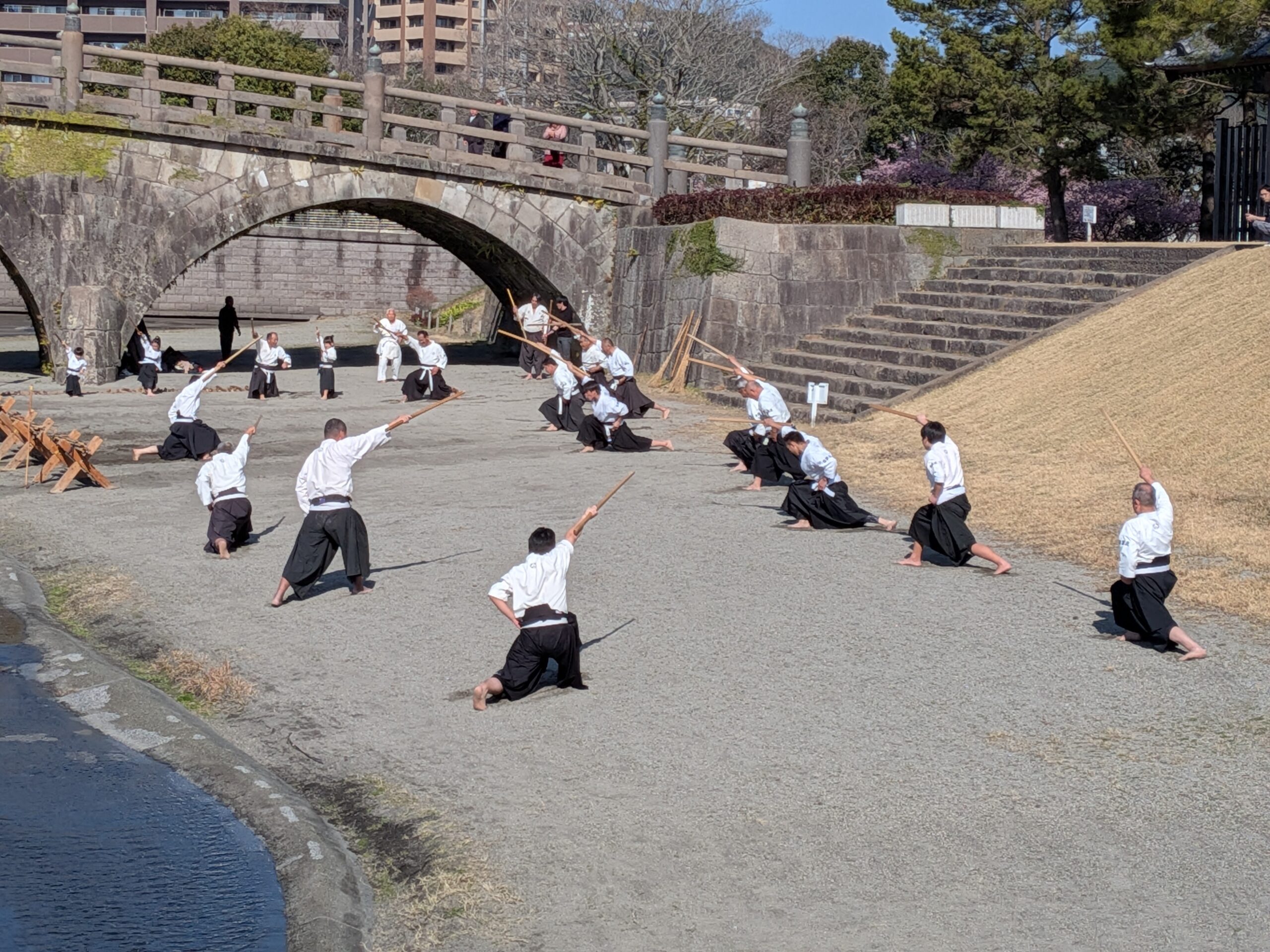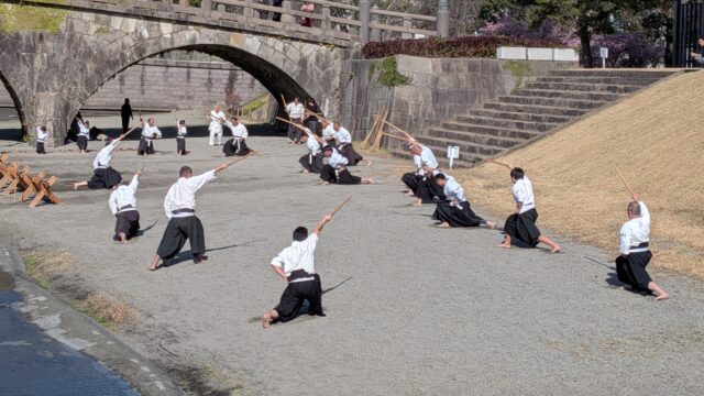 活動の風景 【鹿児島合同稽古】石橋記念公園で行いました jigenryuhozonkai 2026年2月22日 河津桜満開の石橋記念公園で、今年初めての鹿児島合同稽古を行いました。 20℃を超える晴天の下で、久しぶりに汗をかきながら、さわやかで充実した稽古ができました。 公園を散策される多くの方にもご覧いただきました。