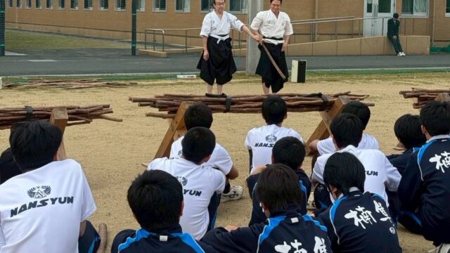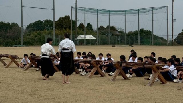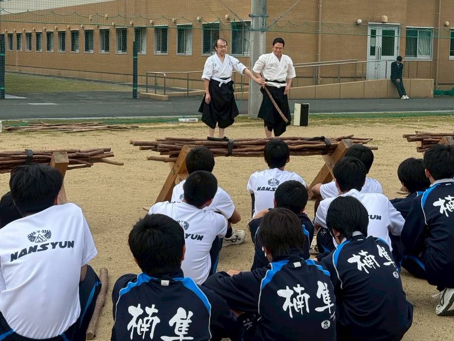 活動の風景 【高山道場】楠隼中学校で体験指導を行いました【肝付町】 jigenryuhozonkai 2026年3月17日 / 2026年3月18日 開校10年を迎えた楠隼中学校で、例年通り自顕流の体験指導を行いました。 生徒さん達は、体育祭での発表に向けて一生懸命体験に取り組んでくれました。 4月からは女子生徒も入学してくるので、更に気合が入ることでしょう。